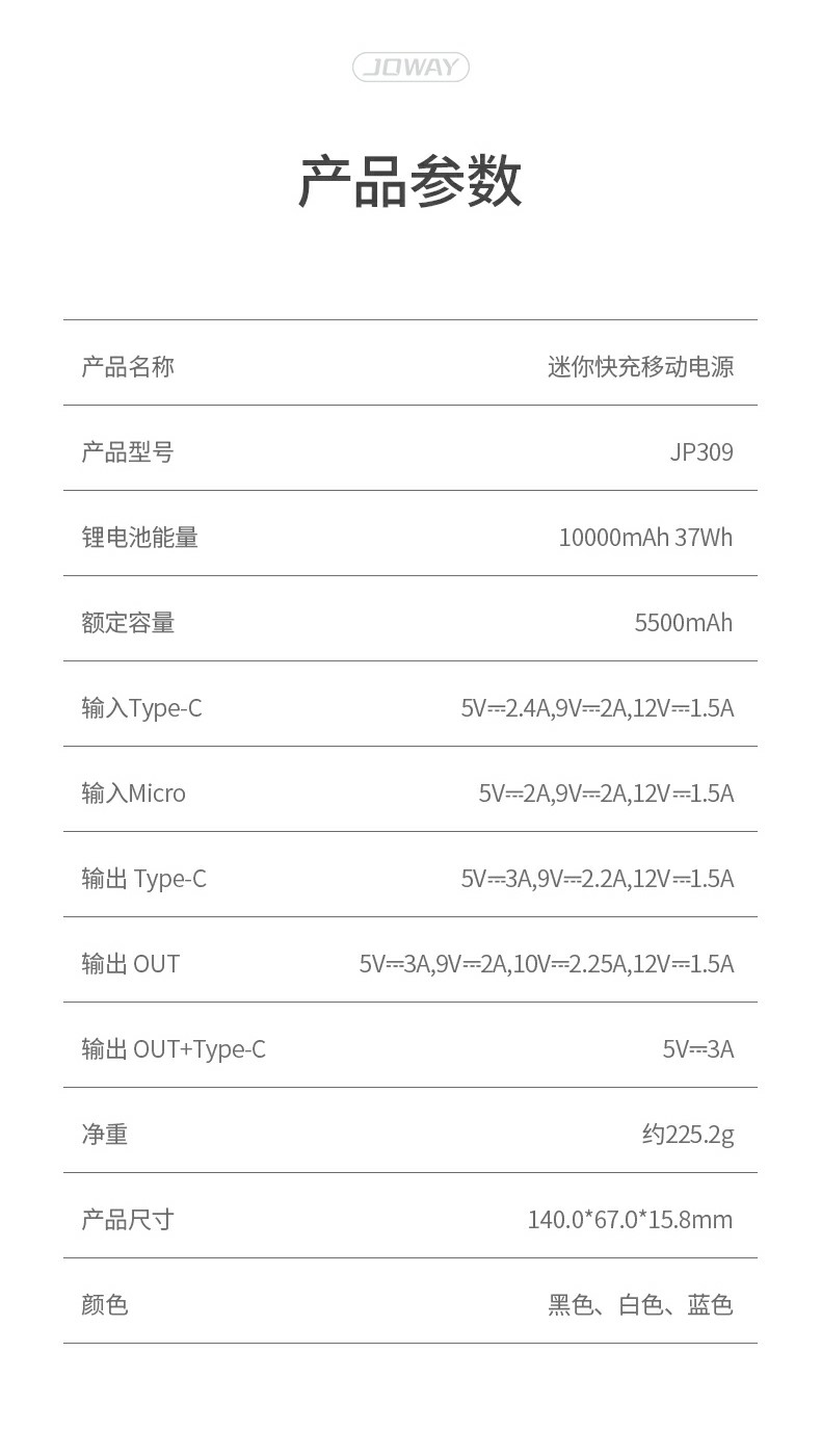 JP309 迷你快充充电宝