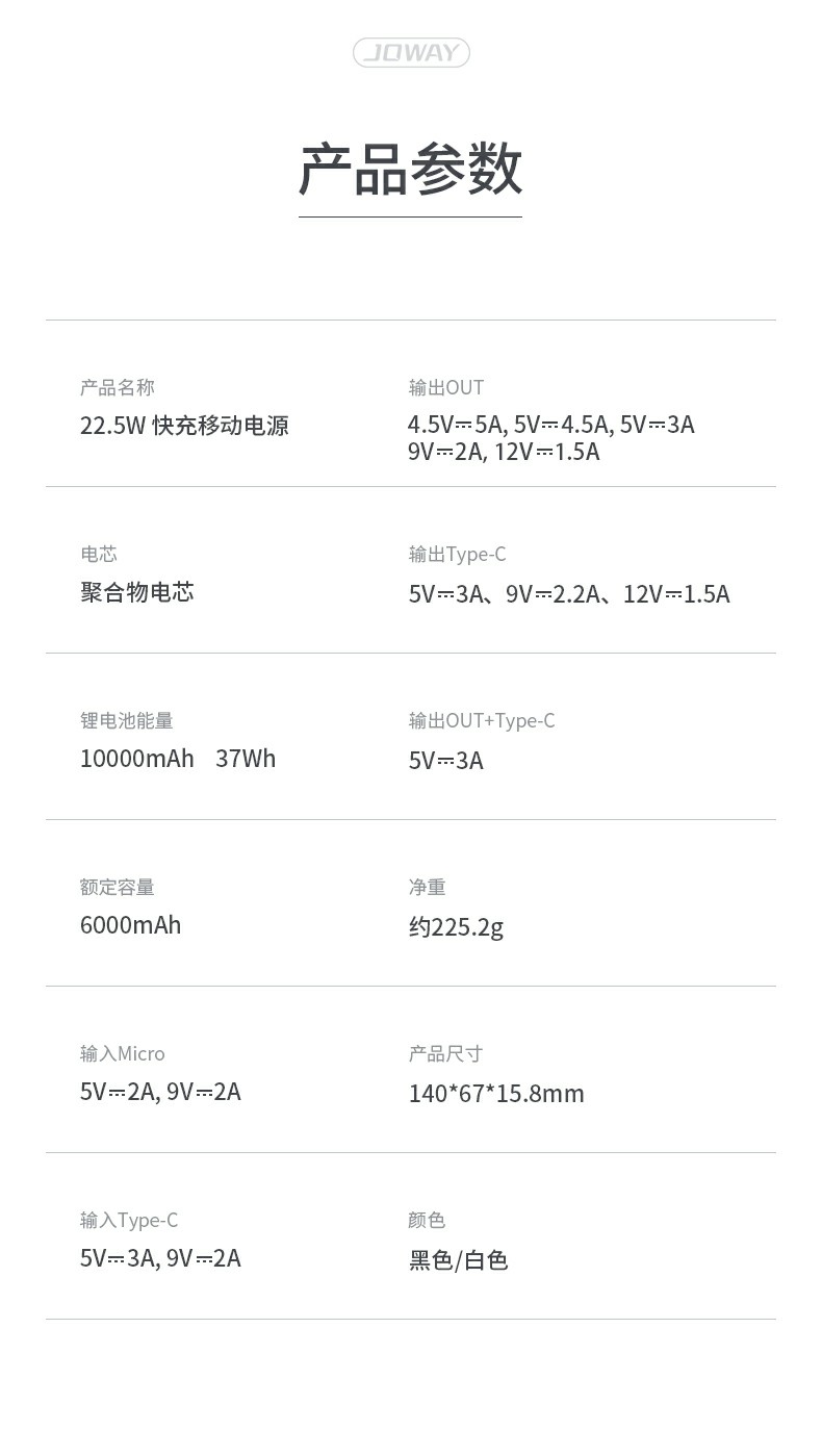 JP288 22.5W 快充移动电源