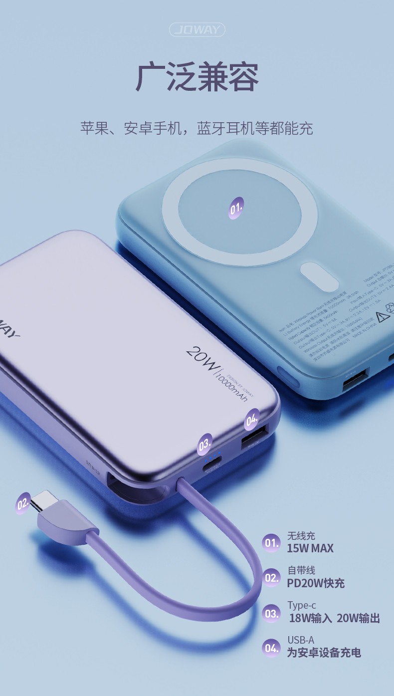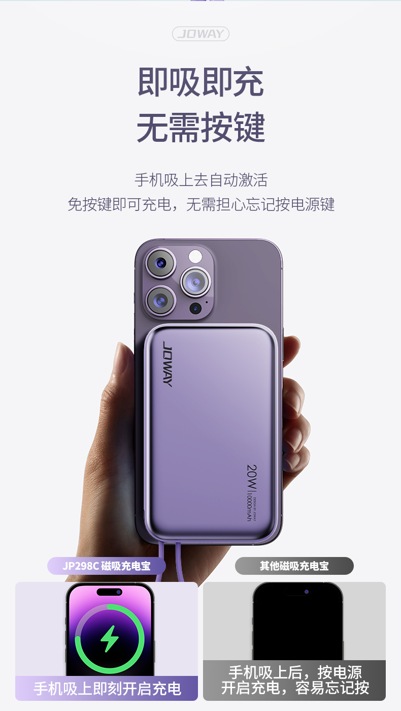 • 名称:JP298C PD20W磁吸无线充移动电源