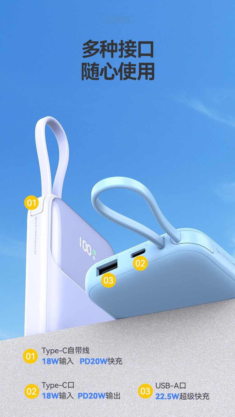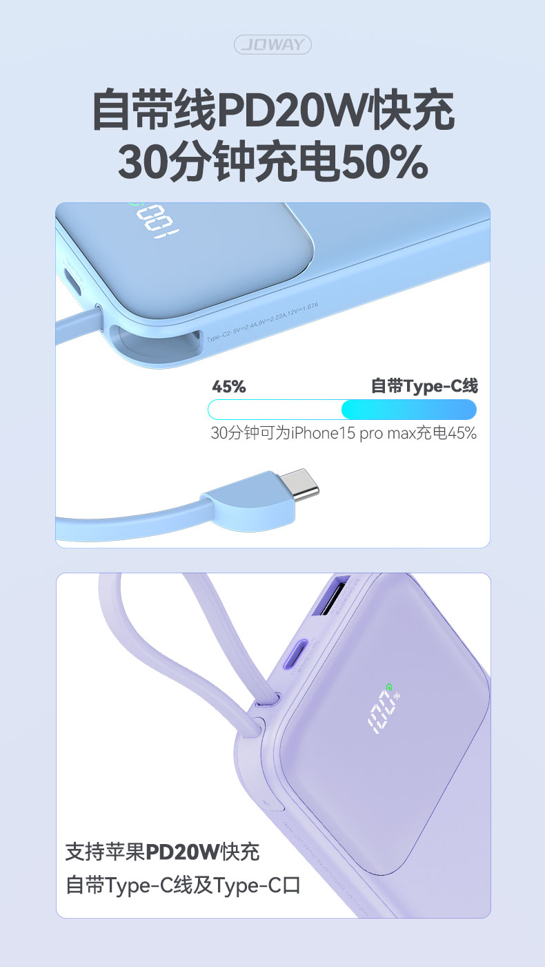 JP327 自带线快充充电宝_移动电源_深圳市豪利777电源有限公司
